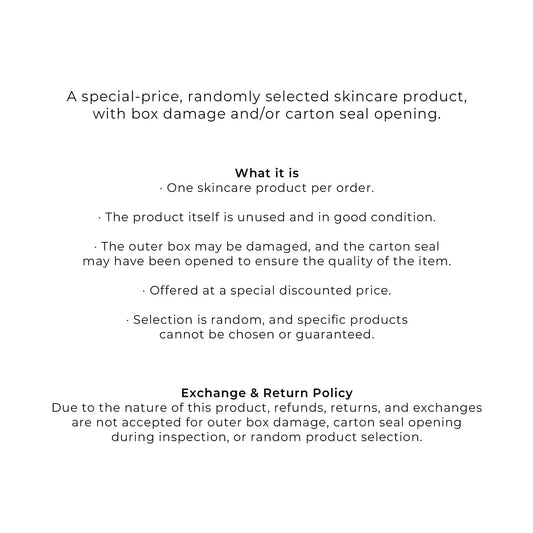 A special-price, randomly selected skincare product, with box damage and/or carton seal opening